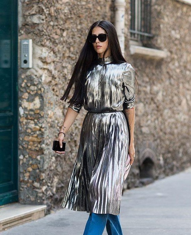 Ma veniamo allo street style 2019: solitamente si pensa che i colori oro e argento metallizzati siano da associare alle festività natalizie. Ma le regole sono cambiate: da quest’anno, infatti, lo street style incontra il metallizzato e diventa letteralmente scintillante. Pensavate fosse impossibile? Invece non lo è: gli abiti quotidiani e casual incontrano i tessuti lucidi.